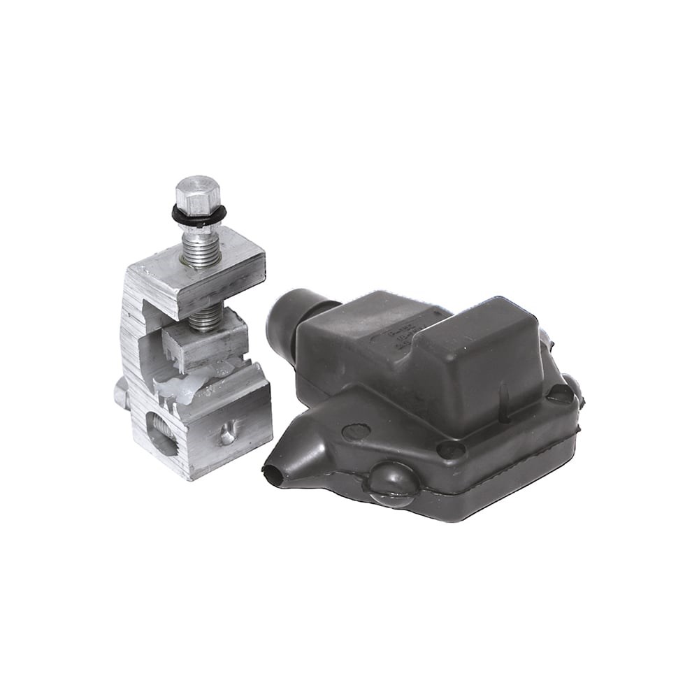 Зажим типа p-152 предназначен для электрического соединения изолированного провода со стороны магистрали и неизолированного провода со стороны ответвления. Имеют раздельную затяжку болтов на магистральной и ответвительной линии. При подключении ответвительных проводов необходимо зачистить концы от изоляции. Контакт с изолированным проводом магистрали обеспечивается прокалыванием изоляции, с зачищенным проводом – прижимной пластиной. При достижении момента, необходимого для создания надежного электрического контакта, происходит срыв головки болта магистральной линии. Два отдельных болта на ответвительной стороне позволяют подключать сразу два потребителя от одного зажима и производить многократное переподключение, не снимая зажим с магистрали. Поставляется в комплекте с защитным кожухом. На прокалывающие и прижимные элементы нанесена контактная смазка. Зажим и кожух устойчивы к ультрафиолетовому и солнечному излучению, высоким и низким температурам, коррозии и агрессивным атмосферным воздействиям.