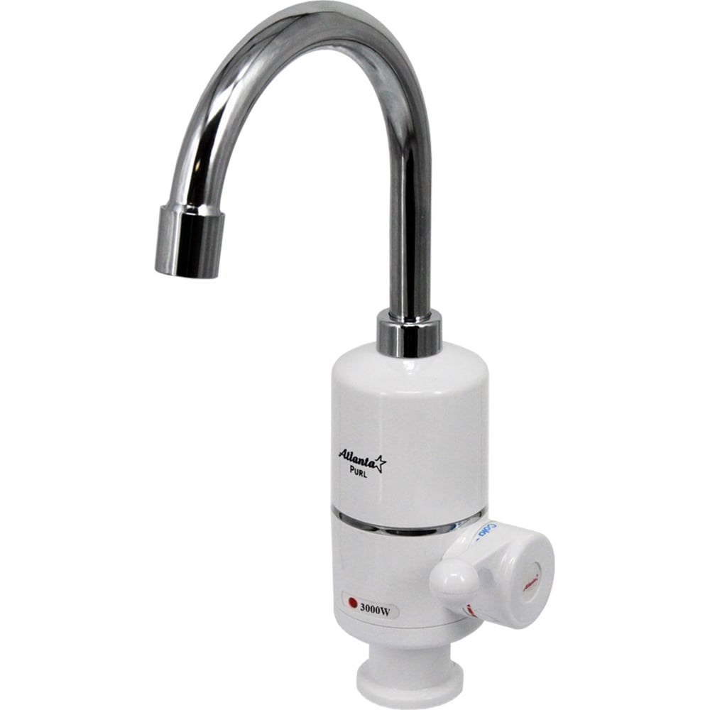 Водонагреватель-кран Atlanta ATH-7420 white отличается особой компактностью: он весит чуть меньше килограмма и представляет собой кран с тэном и блоком управления. Он подойдет для тех мест, где горячего водоснабжения нет и не предвидится – со смесителем его использовать неудобно, так как потребуется демонтаж последнего. Нагрев начинается автоматически при включении воды, как только пользователь открывает кран. Если давления в системе нет, ТЭН не включится, так прибор защищается от перегрева. Нагреватель характеризуется высокой энергоэффективностью (98.5 %). Поворотный регулятор Регулировка температуры нагрева Индикация включения Индикатор нагрева Защита от перегрева Защита от сухого нагрева
