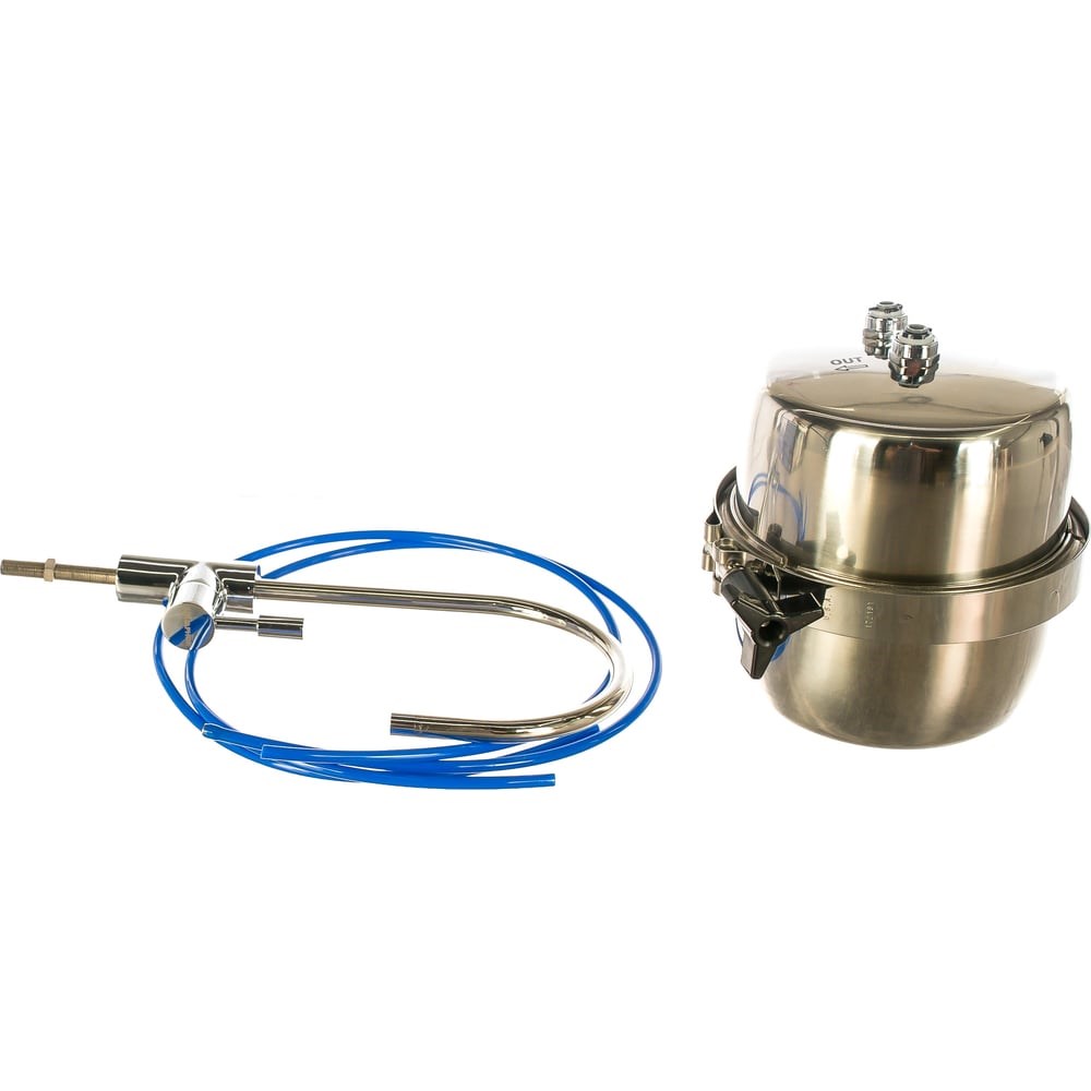 Водоочиститель Аквафор Фаворит ЭКО имеет компактные размеры, устанавливается на кухне прямо под мойкой, подходит для подключения к водопроводу при помощи гибкой подводки. Сменный модуль выполнен по технологии CarbFiberBlock, он имеет градиентную пористость для безупречной очистки воды от растворимых примесей, ржавчины, аллергенов и неприятного запаха. Ионообменный волокнистый сорбент Aqualen™ эффективно нейтрализует катионы тяжелых металлов даже из воды с повышенным уровнем жесткости. Матрица с сорбирующими волокнами, активированная кокосовым углем, удаляет органические вещества, хлор, фенол, канцерогены, пестициды и пр. Безопасное серебро многократно усиливает бактерицидный эффект. Микрофильтрационная мембрана на стадии финишной очистки задерживает коллоидные частицы и обеспечивает 100% защиту от бактерий. После прохождения всех степеней очистки вода становится идеально пригодной для питья. Устройство отличается надежностью и безопасностью в работе, оно выдерживает гидроудары в течение 250 тысяч циклов. Корпус фильтра выполнен из качественной нержавеющей стали, он не подвержен коррозии и механическим повреждениям. Аппарат прост в обслуживании, очищающий модуль легко поддается замене благодаря быстроразборному хомуту. В данной модели в качестве сменного фильтра можно установить модуль В150 с ресурсом работы 12000 литров.