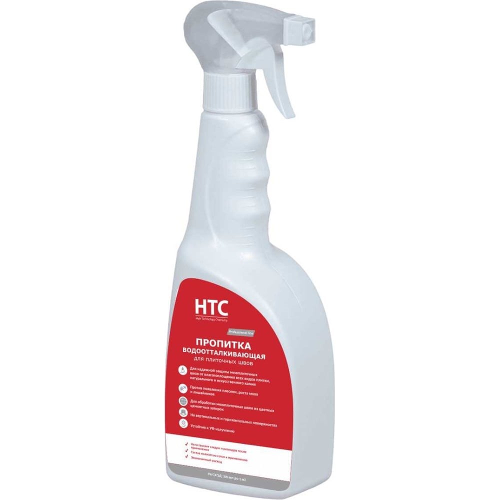 Водоотталкивающая пропитка для плиточных швов НТС Комплексное влагоотталкивающее средство для обработки поверхности - гидрофобизатор для защиты от влагопоглощения для межплиточных швов всех видов плитки, натурального и искусственного камня. Области применения: Для надежной защиты межплиточных швов от влагопоглощения всех видов плитки, натурального и искусственного камня. Для обработки межплиточных швов из цветных цементных затирок Против образования высолов, появления плесени, роста мхов и лишайников; Для наружных и внутренних работ. На вертикальных и горизонтальных поверхностях Устойчив к УФ-излучению Для промышленного и гражданского строительства Для помещений с повышенной влажностью (ванные комнаты, санузлы) Внимание! Оптимальный расход средства определяется опытным путём на небольшом участке обрабатываемой поверхности Перед выполнением работ необходимо убедиться, что обрабатываемая поверхность имеет одинаковую впитывающую способность, не загрязнена и не имеет высолов и других загрязнений Если поверхность загрязнена высолами, плесенью, поражена грибком и т.п., присутствуют масляные следы, следует обработать поверхность очистителем CemClean - удалитель высолов, и повторить пробное нанесение гидрофобизатора. Операцию повторять до получения требуемого эффекта без разводов и пятен. Не используется для обработки поверхностей, которые подвергаются механическому воздействию (бетонные и каменные дорожные покрытия и полы).