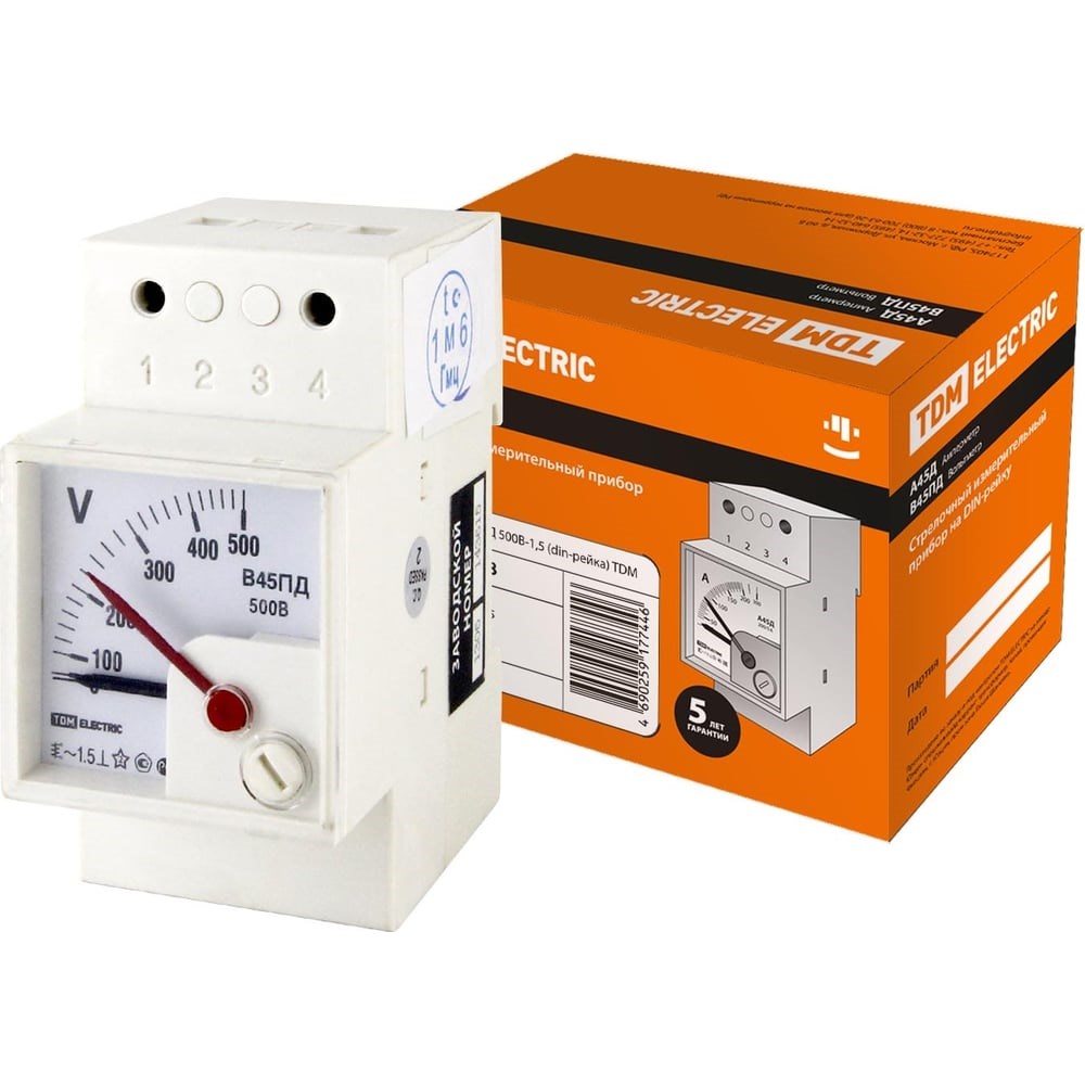 Вольтметр TDM В45ПД 500В-1.5 din-рейка SQ1102-0308 используется для измерения напряжения. Безопасность. Корпус изготовлен из пластика, не поддерживающего горение. Прибор оснащен дополнительной красной стрелкой-указателем, которая контролирует значения напряжения и определяет отклонение от установленного значения.