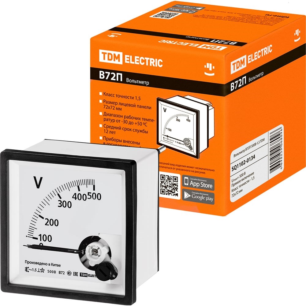 Вольтметр применяется в низковольтных комплектных устройствах. Корпус из негорючего самозатухающего пластика. Для измерения силы тока и напряжения в однофазных электрических цепях переменного тока. Внесен в государственный реестр средств измерений и имеет свидетельство типа CN.C.34.004.A №45415. Имеет соответствующие штампы на корпусе и в паспорте. Полностью совместим с трансформаторами тока ТТН TDM ELECTRIC. Самозатухающий пластик обеспечивает пожаро- и электробезопасность.