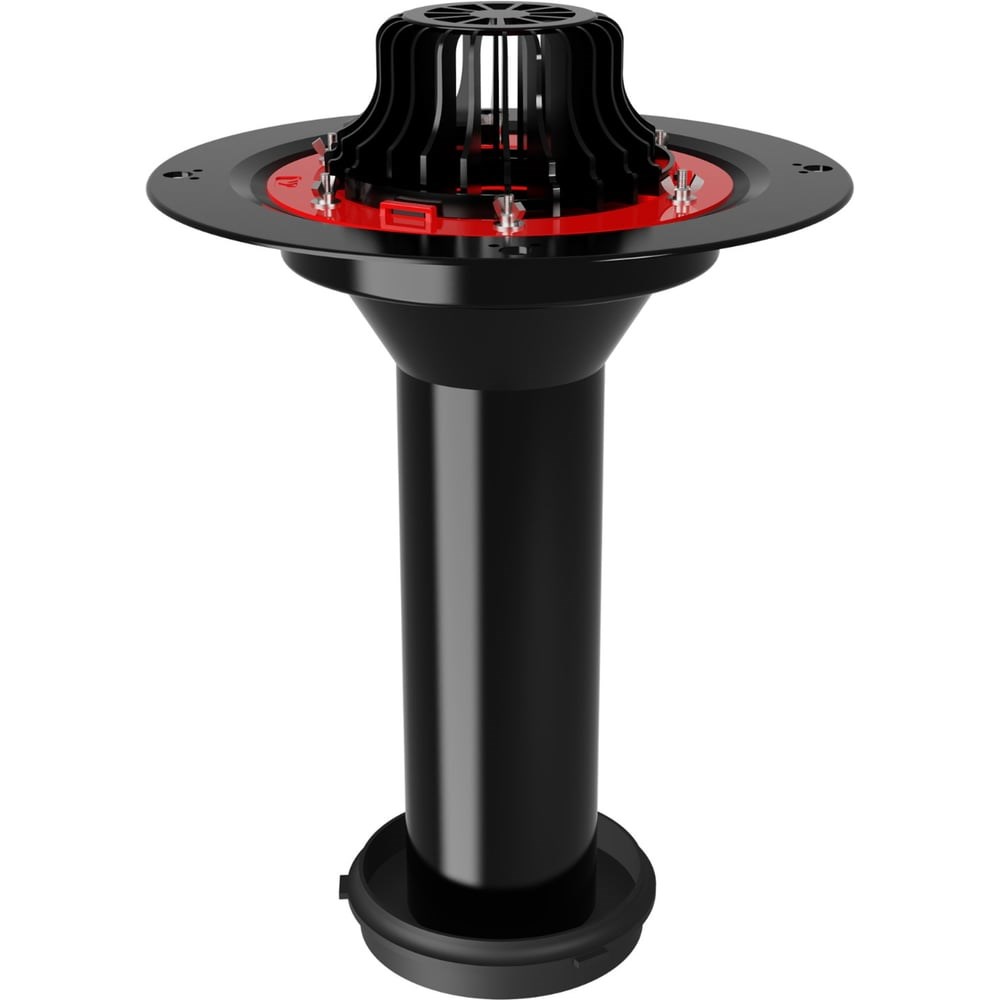 Воронка Fachmann c фланцем, с манжетой VMN 110x450 мм 01.095 - это надставной элемент состоящий из воронки c металлическим обжимным фланцем без обогрева, дополнительно комплектуется манжетой. При необходимости вывода сточных вод из нижнего слоя кровельного "пирога" необходимо использовать дренажное кольцо (перевернув листвоуловитель нижней воронки на 180 градусов).