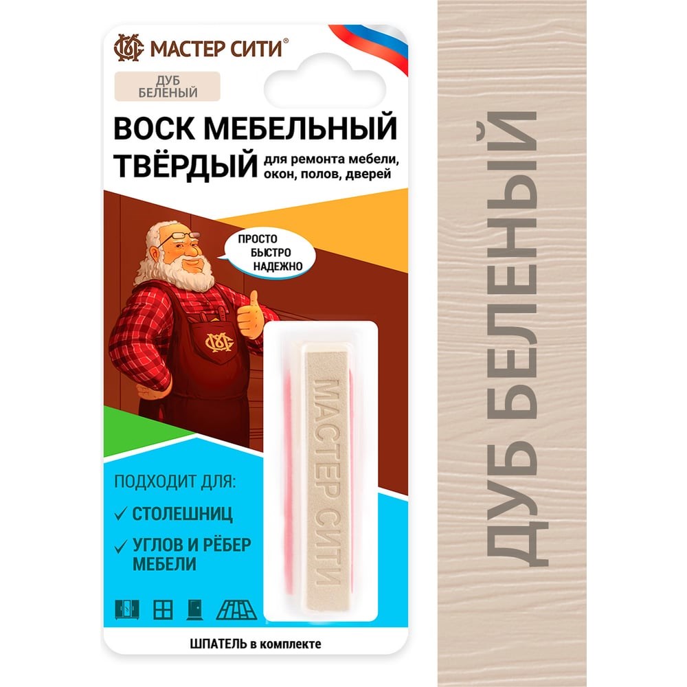 Быстрый ремонт мебели! Твердый мебельный воск специально разработан для реставрации мебели и дефектов на изделиях с высокими требованиями по износостойкости. Применяйте для восстановления мебели - углов и ребер, столешниц, напольных покрытий, ремонта мебели. Твердый воск может использоваться для восстановления поврежденных поверхностей керамической плитки, он прочно закрепляется в повреждении, не дает усадки и не выцветает со временем. Твердый воск для мебели обладает высокой прочностью, устойчив к истиранию, влаге и мытью. Подходит для ремонта повреждений на мебели, окнах, дверях, лестницах, напольных покрытиях, керамической плитке и других изделиях из ЛДСП, МДФ, массива дерева, пластика. Воск Мастер Сити помогает восстановить мебель. В комплект входит шпатель. Внимание! Твердый воск требует плавления при нанесении. Для этого используйте ВОСКОПЛАВИТЕЛЬ Мастер Сити. Также воск можно расплавить нагретым кончиком ножа. Подробную инструкцию читайте на упаковке, смотрите видео в карточке товара. Обратите внимание, что из-за индивидуальных настроек вашего экрана цвет продукта может отличаться. Проверьте ваш выбор цвета на экранах двух устройств.