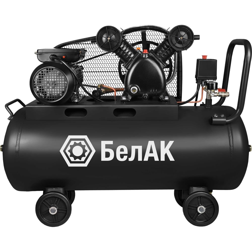 Компрессор воздушный для гаража поршневой 100 л «БелАК» - предназначен для подачи сжатого воздуха в различных отраслях промышленности. Это незаменимый помощник в гараже, на даче или на строительной площадке. Данная модель - оборудована мощным двигателем 2,2 Квт, и сверхпроизводительной компрессорной головкой 490 л/мин. Такие показатели позволяют использовать двухпоршневой масляный компрессор с большим спектром пневмоинструментов. Компрессор для гаража 220в имеет двойную покраску корпуса специальным покрытием «MatteGuard», которое обеспечивает надежную защиту от сколов и ржавчины. . Модель оснащена вместительным ресивером объёмом 100 литров, что обеспечивает возможность продолжительной работы с высокой эффективностью.