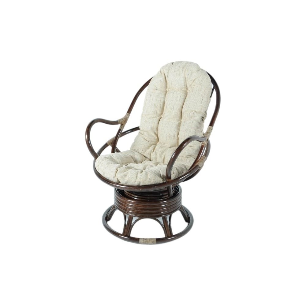 Вращающееся кресло с подушкой Vinotti 05/01 Темный Коньяк подходит для использования как дома, так и на улице Изготовлено из натурального ротанга, который устойчив к изменению температуры и не выцветает на солнце. Мягкая подушка придает дополнительную привлекательность и обеспечивают удобство в использовании.