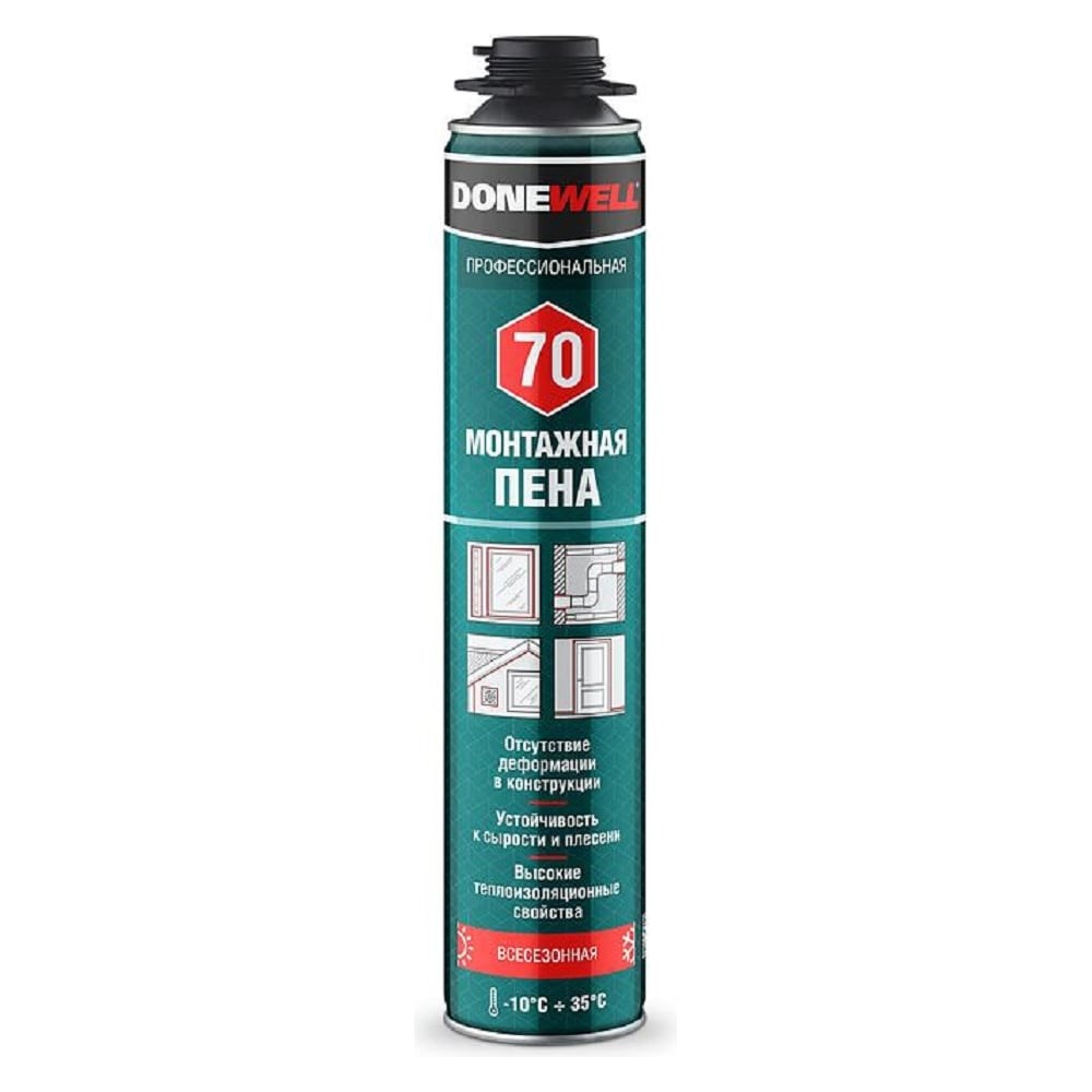 Пена полиуретановая монтажная профессиональная всесезонная RUSH DONEWELL 70 DPP10U70 разработана для монтажа светопрозрачных конструкций. Продукт незаменим в области герметизации и тепло- и звукоизоляции в строительстве. Отличается превосходной адгезией к большинству строительных материалов (бетон, кирпич, дерево, металл), высокой устойчивостью к сырости и плесени.