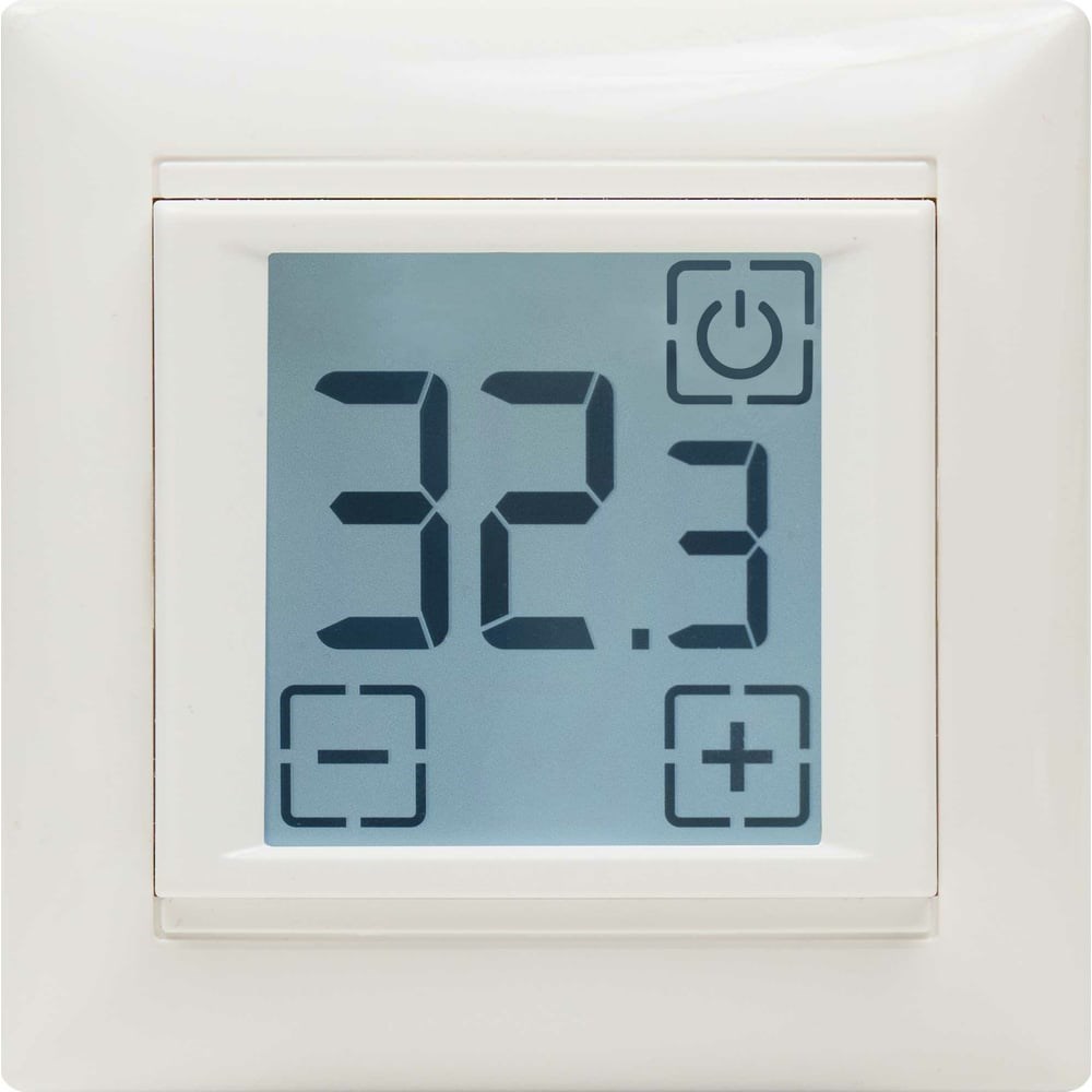 Термостат сенсорный встраиваемый SDF-419B обеспечивает эффективное управление системами отопления квартир, загородных домов и дач. Подходит для систем обогрева с любым типом теплых полов (водяных, кабельных электрических и других), устанавливаемых в помещениях различного назначения.Легкое управление термостатом обеспечивает быструю настройку режимов отопления. Оборудован процессором, срок службы которого при нормальной эксплуатации составляет30 лет.Стильный дизайн и самые современные технологии, цифровой ЖК дисплей с подсветкой. Декоративная рамка терморегулятора может быть заменена рамками серии Legrand Valena. Терморегулятор устанавливается в помещении с температурой от 0°C до +50°C и влажностью не более 80%.Термостат имеет стандартный встраиваемый корпус, который предназначен для установки в стандартную становую коробку диаметром 60 мм. Эксплуатация термостата не требует специального обслуживания. Для крепления к подрозетнику в корпусе термостата имеются отверстия, клеммная колодка для подключения нагревательных секций (приборов), сети питания и внешнего датчика температуры. В термостат установлен электронный регулятор, обеспечивающий установку заданной температуры, автоматическое включение и отключение нагрузки.