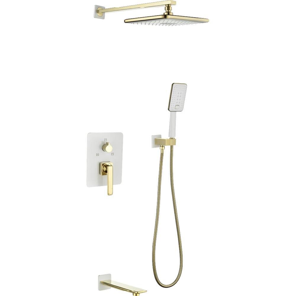Встраиваемый смеситель для ванны и душа Lemark Миста с дополнительной 3-функциональной лейкой, белый/золото LM6422WG