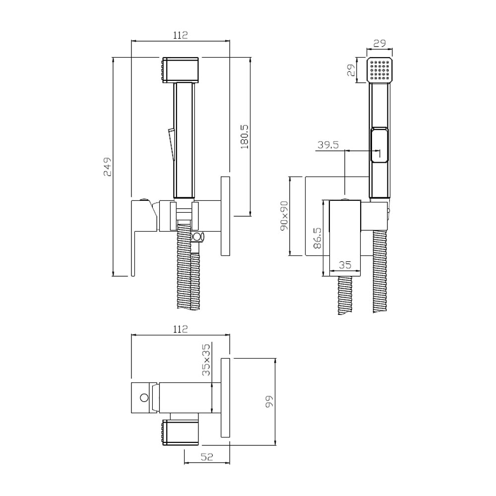 Встраиваемый смеситель Olive's GRANADA с гигиеническим душем 05131GN представляет собой однозахватный встраиваемый смеситель настенного монтажа с гигиенической лейкой, квадратной формы.Корпус изготовлен из из высококачественного сплава HQ Brass и двухслойного никель-хромового покрытия Liquid Diamond, что обеспечивает срок службы изделия до 25 лет.