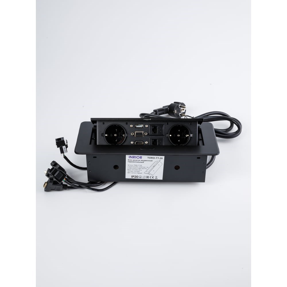 Выдвижной встраиваемый блок представляет собой металлический прямоугольный розеточный блок на 2 EURO розетки, 2 RJ45, USB-А DATA, HDMI.При нажатии на кнопку на лицевой части розетки, происходит плавное открытие. Качественная порошковая окраска корпуса позволяет долгое время сохранить внешний вид нового изделия, розетка не царапается. Данная модель готова к эксплуатации вся внутренняя разводка уже сделана на заводе, в комплекте с сетевым шнуром длиной 1.8м, необходимо только подключить изделие к розетки.Выдвижные розетки отлично подходят для установки в столешницу на кухне. В закрытом положении встраиваемая розетка образует со столешницей практически ровную поверхность. Также выдвижные розетки нашли распространение в офисах, переговорный залах, стойках обслуживания клиентов.
