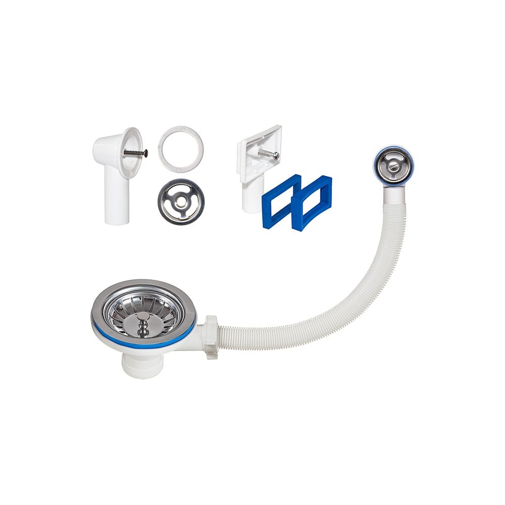 Выпуск ORIO 3 1/2 с переливом прямоугольным и круглым Б-4507-1 с нержавеющей чашкой д.114мм и решёткой пробкой, для кухонной мойки с прямоугольным или круглым переливом и диаметром слива 90мм. В комплекте идут так же две прокладки на прямоугольный перелив – прямоугольная на квадратную форму мойки и полукруглая на круглую форму мойки. Необходим сифон с гайкой 1 1/2".