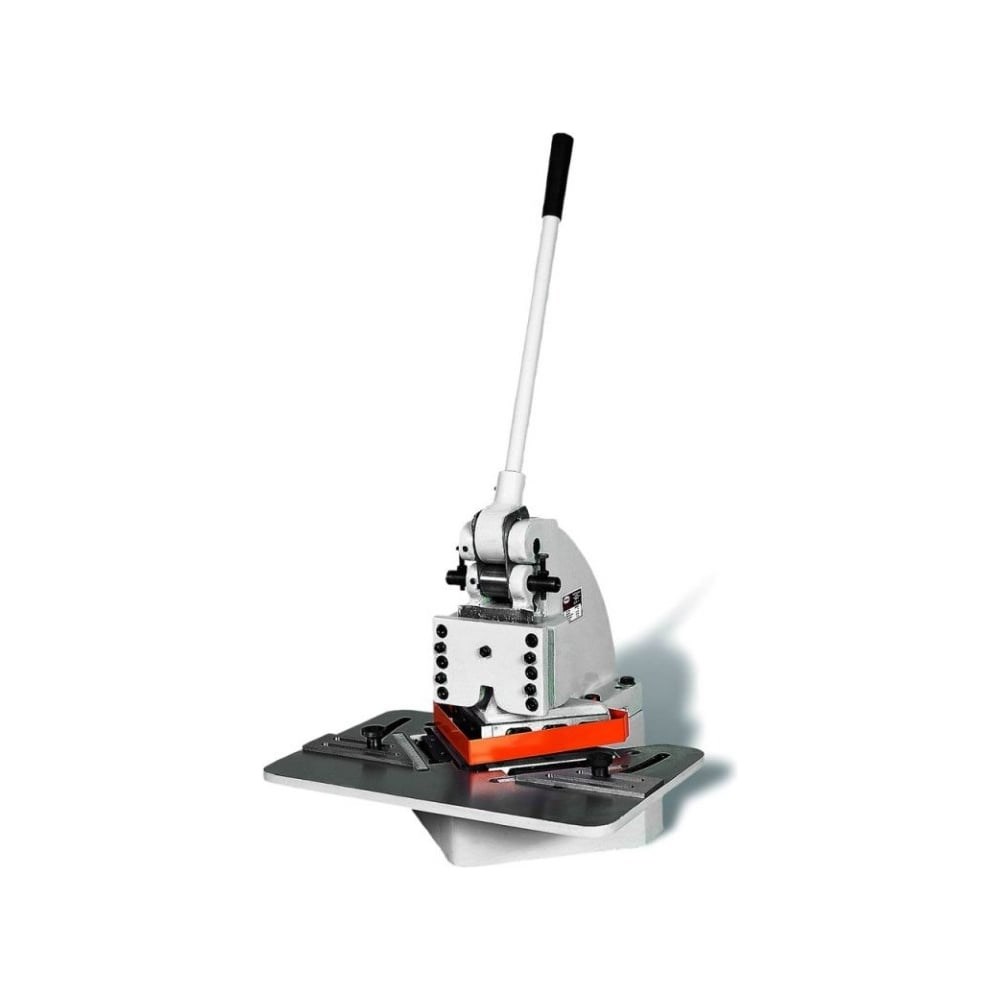 Вырубной штамп Proma PNP-4 25500004 используется для слесарных работ в небольших производствах. Штамп вырубает в листовом металле сегменты под углом 90 градусов. Надежный передаточный механизм развивает усилие на штоке до 4 тонн. Благодаря тяжелой конструкции (95 кг) станок устойчив. Передвижные регулируемые упоры делают работу точной.
