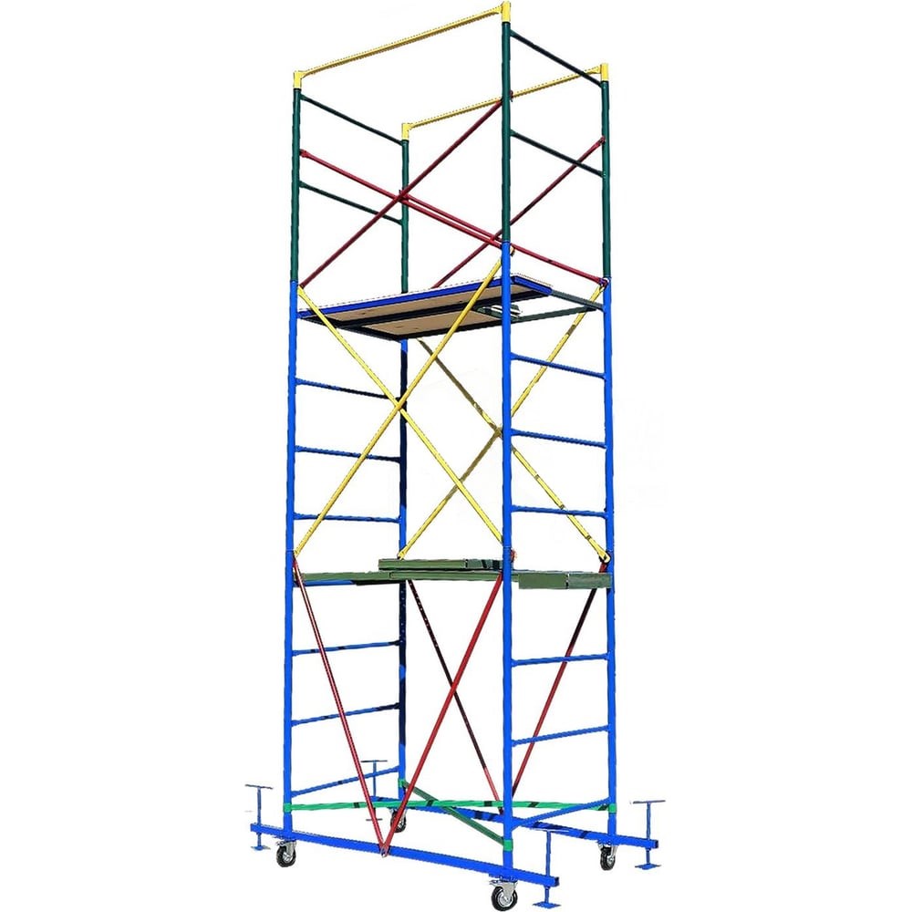 Малогабаритная вышка-тура УВТ-7,5 пользуется большим спросом как среди владельцев загородных участков, так и среди профессиональных строителей. Во-первых, ее небольшие параметры отлично подходят для отделочных работ внутри зданий, ремонта фасадов, покраски сооружений, мытья окон или монтажа декоративных предметов. Размеры рабочей площадки вполне достаточно для комфортного и безопасного размещения одного человека. Данная разборная строительная вышка состоит из маршевых рам, установленных на колесное основание. Между собой несущие элементы стягиваются диагоналями, которые придают каркасу нужную жесткость. Регулировать устойчивость средств подмащивания на неровной установочной площадке позволяют винтовые опоры. Так как подмости УВТ-7,5 полностью изготавливаются из металла, их покрывают порошковой полимерной краской – для защиты от коррозии. Внимание, изображение товара может отличаться от реального! Верные параметры указаны в технических характеристиках товара.