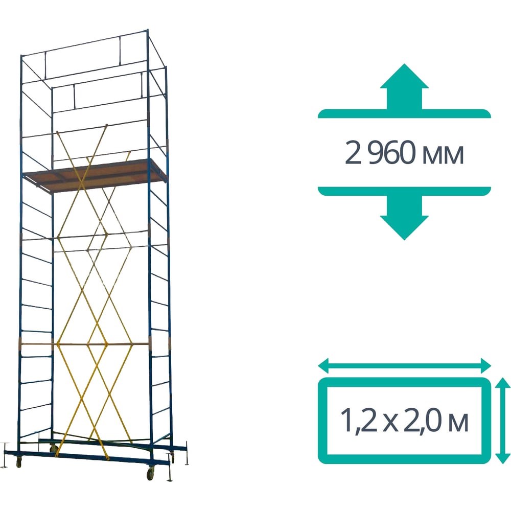 Данные подмости собираются из прочных маршевых рам, установленных друг на друга (с использованием гантелей) для образования секций. Рабочая площадка (1.2*2 м) ограждается специальными перилами и поручнями. Основание мобильных подмостей снабжается не только колесами, но и домкратами. В качестве защитного покрытия, наносимого на стальные элементы, предусмотрено использование антикоррозийной порошковой краски. Внимание! Фото условное. У данной модели диагональ в комплект поставки не входит.