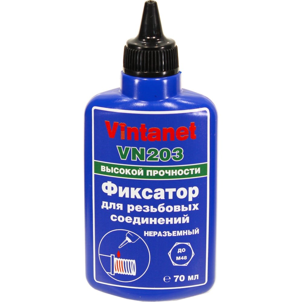 Фиксатор для резьбовых соединений, высокопрочный, анаэробный VINTANET VN203, 70 мл VN20370ML - высокопрочный фиксатор повышенной вязкости для резьбовых соединений с зазорами до 0,5мм, анаэробный, отверждающийся при нарушении контакта с воздухом с образованием полимерного слоя. Для нанесения на любые металлы, включая пассивные основания, такие как нержавеющая сталь, алюминий и поверхности с гальваническим покрытием. Продукт обладает коротким временем фиксации на стали, латуни и нержавеющей стали – 5, 10 и 15 мин соответственно. Демонстрирует высокую устойчивость к незначительному загрязнению промышленными маслами (например, моторными, антикоррозионными маслами), а также смазочно-охлаждающими жидкостями.