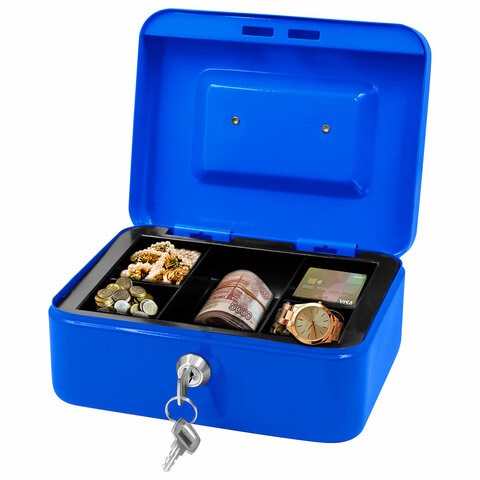 Ящик для денег, ценностей, документов, печатей, 90х160х200 мм, ключевой замок, синий, BRAUBERG, 291351