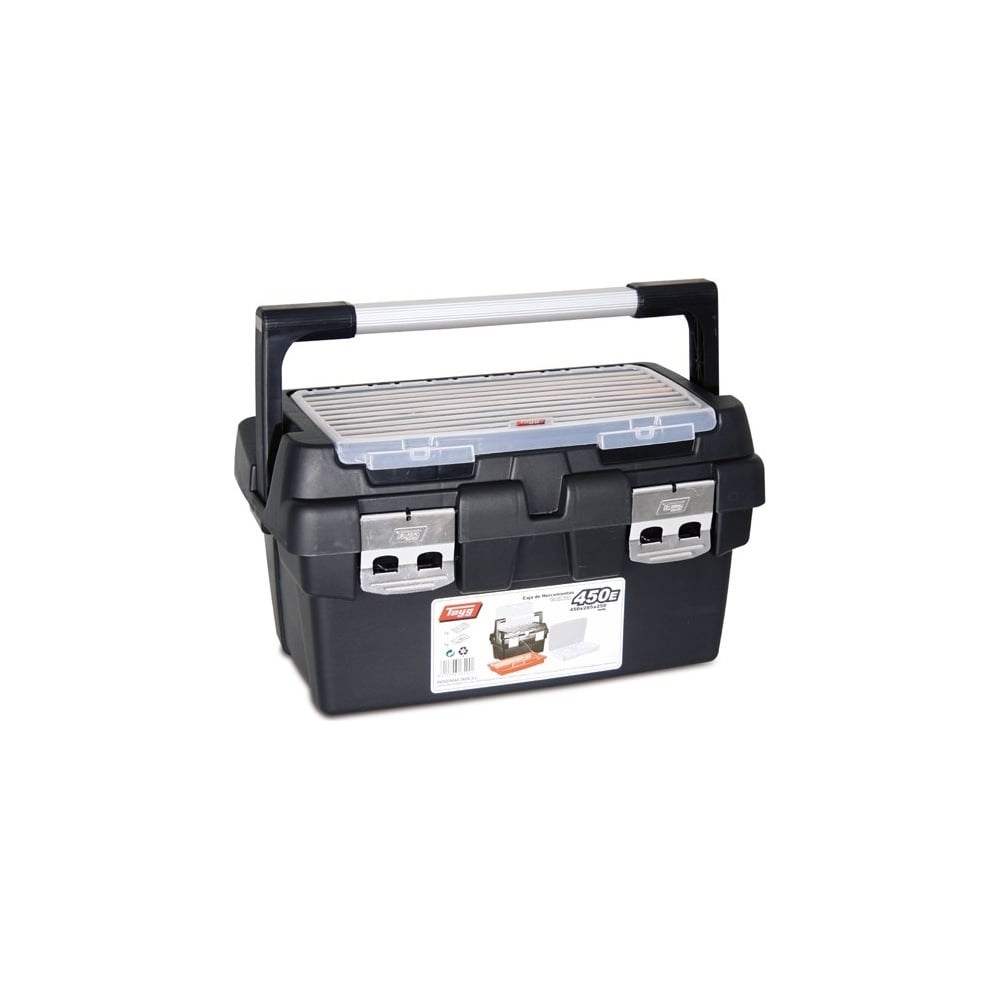 Ящик для инструментов фирмы Tayg №450Е. В комплекте имеются лоток, органайзер и органайзер в крышке. Размер данной модели составляет: 45х28.5х25см.Ящик для инструмента Tayg - это профессиональный ящик для хранения и транспортировки инструментов, который используется в различных отраслях промышленности, строительства, ремонта и других областях. Он выполнен из прочного пластика, имеет удобную ручку для переноски и металлические замки для защиты содержимого от повреждений. В ящике есть просторное отделение, лоток и 3 органайзера для хранения различных инструментов: сверл, ключей, отверток, молотков и т.д. Ящики Tayg отличаются высоким качеством изготовления и надежностью, что делает их идеальным выбором для профессиональных мастеров и любителей.