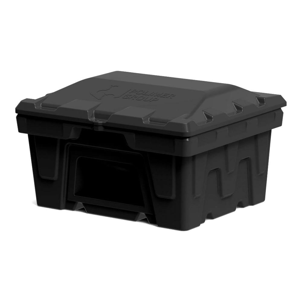Ящик 250 л с крышкой и дозатором POLIMER GROUP цвет черный FB22501 производитсяротационнымформованием из полиэтилена низкой плотности высокого давления LLDPE. Благодаря этому готовое изделие не имеет швов. Сертифицировано для хранения пищевых продуктов. Также можно использовать для хранения песка, зерна и прочих.