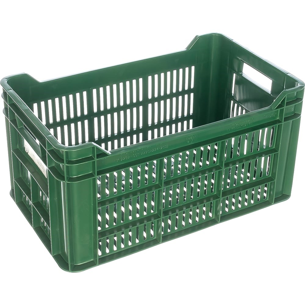 Ящик п/э с перфорацией 500х300х264 зеленый Тара.ру 01543 обладает достаточными размерами, что позволяет переносить большое количество различных продуктов. Модель выполнена из прочного пластика, дополнена ребрами жесткости, которые увеличивают грузоподъемность.