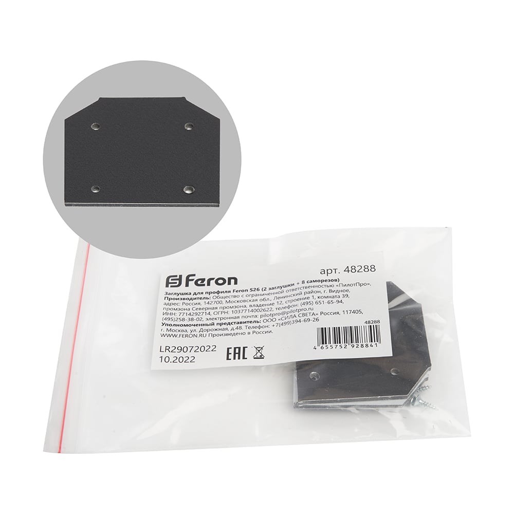 Заглушка для профиля FERON S26 (2 заглушки + 8 саморезов) 48288