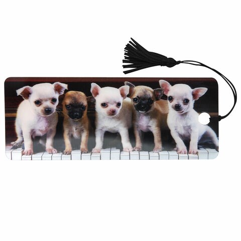 Закладка для книг с линейкой 3D-ОБЪЕМНАЯ BRAUBERG, "Милые щенки", с декоративным шнурком, 128098