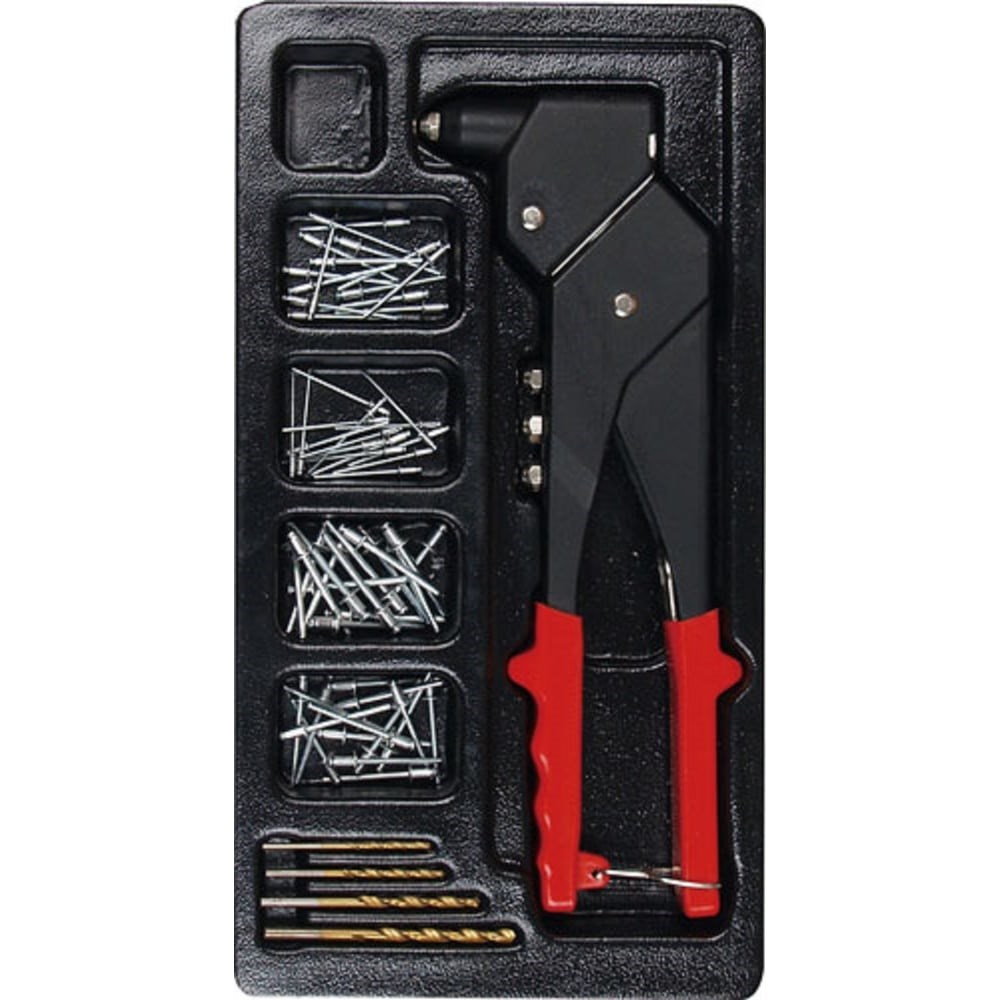 Заклепочник с набором заклепок AmPro в ложементе, 65 пр T30902 поставляется в ложементе из легкого жесткого материала. Он устойчив к маслам и растворителям. Это обеспечивает бережное хранение и продолжительный срок эксплуатации инструмента.