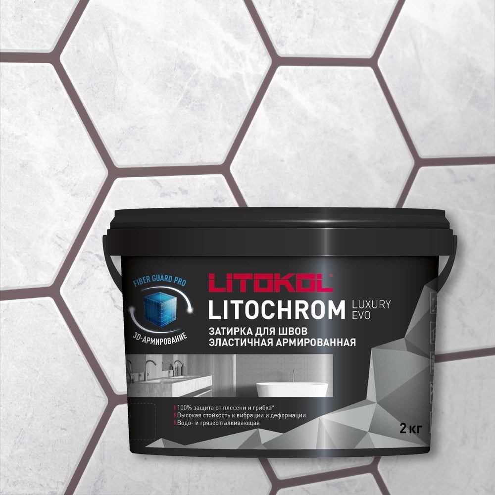 Затирочная смесь LITOKOL LITOCHROM LUXURY EVO LLE 345 сливовый 2 кг 500560002 — эластичная водоотталкивающая цементно-полимерная затирка с защитной системой LitoProtect для заполнения межплиточных швов шириной 1–10 мм включительно. Предназначена для затирки швов при облицовке стен и полов керамической плиткой, стеклянной мозаикой, керамогранитом, натуральным камнем, агломератом. Предназначена для затирки межплиточных швов, шириной от 1 до 10 мм внутри и снаружи помещений, при облицовке стен и полов: жилых помещений (санузлы, ванные, душевые, гостиные); общественных помещений (входные группы, МОП, медицинские, образовательные учреждения, супермаркеты, ТРЦ, бассейны); промышленных помещений (складские, производственные, подсобные помещения), где не предъявляются требования к химической стойкости швов и не предполагается контакт с агрессивными веществами; балконов, террас и т. д.; на деформирующихся основаниях таких как гипсоволокнистые листы (ГВЛ), гипсокартон (ГКЛ), стекломагнезитовые листы (СМЛ); цементные стяжки с водяным и электрическим подогревом.