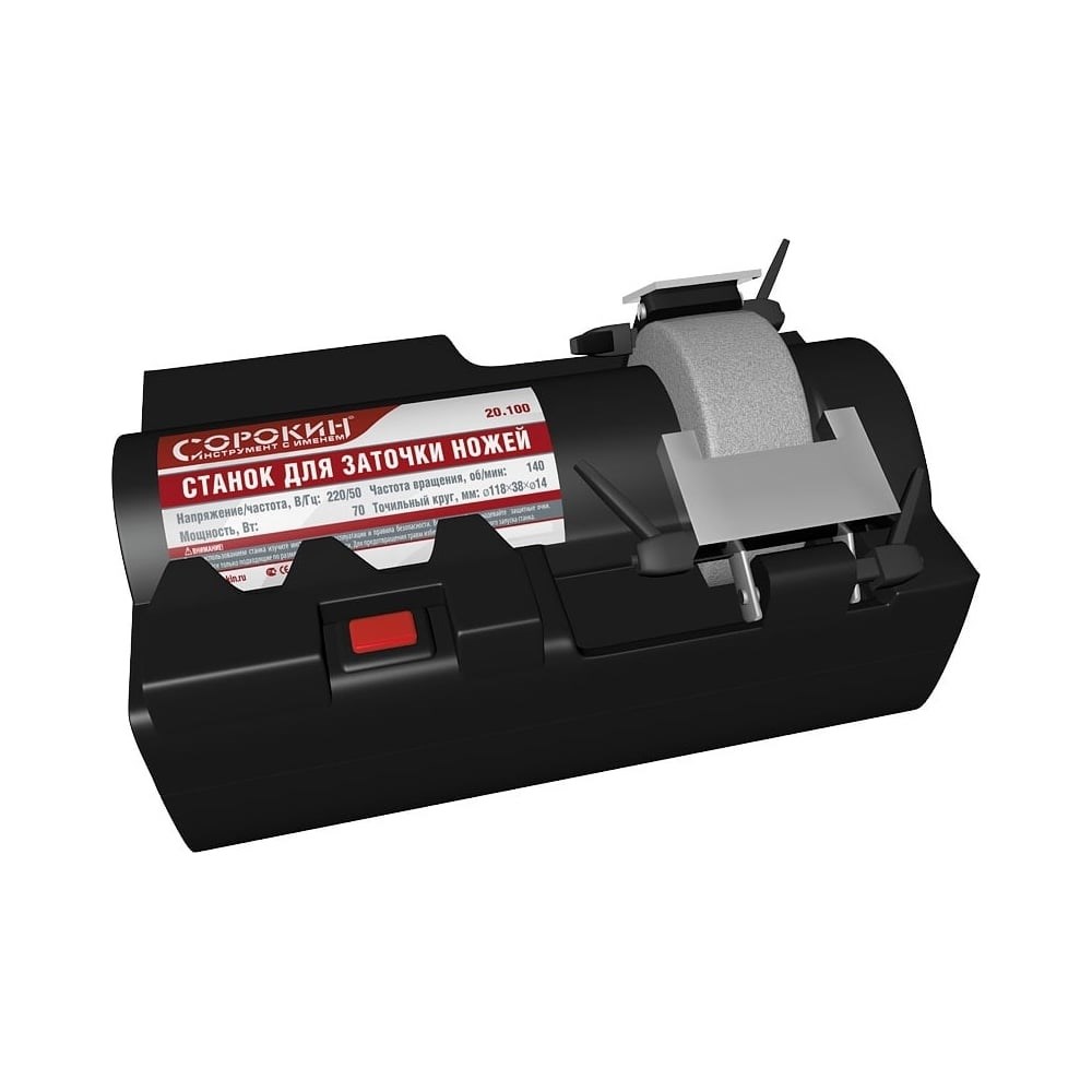 Станок для заточки ножей Сорокин 20.100 имеет компактные габариты и небольшой вес, что значительно упрощает транспортировку и хранение. Благодаря низким оборотам двигателя и точильному кругу с мелким зерном достигается высокое качество заточки режущего инструмента. Специальные упоры для обрабатываемых приспособлений обеспечивают удобство выполнения операций. Тип привода, электрический