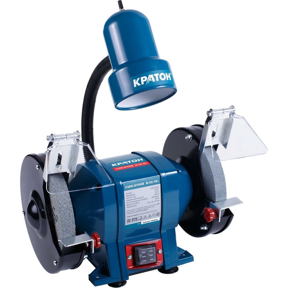 Заточной станок Кратон - инструмент, предназначенный для использования в мастерской, гараже или дома. Изделие применяется для обточки и шлифовки различных предметов, а также заточки режущего инструмента. Предусмотрена подсветка рабочей зоны. Станок прост в использовании и не требует специального ухода, достаточно только содержать его в чистоте.