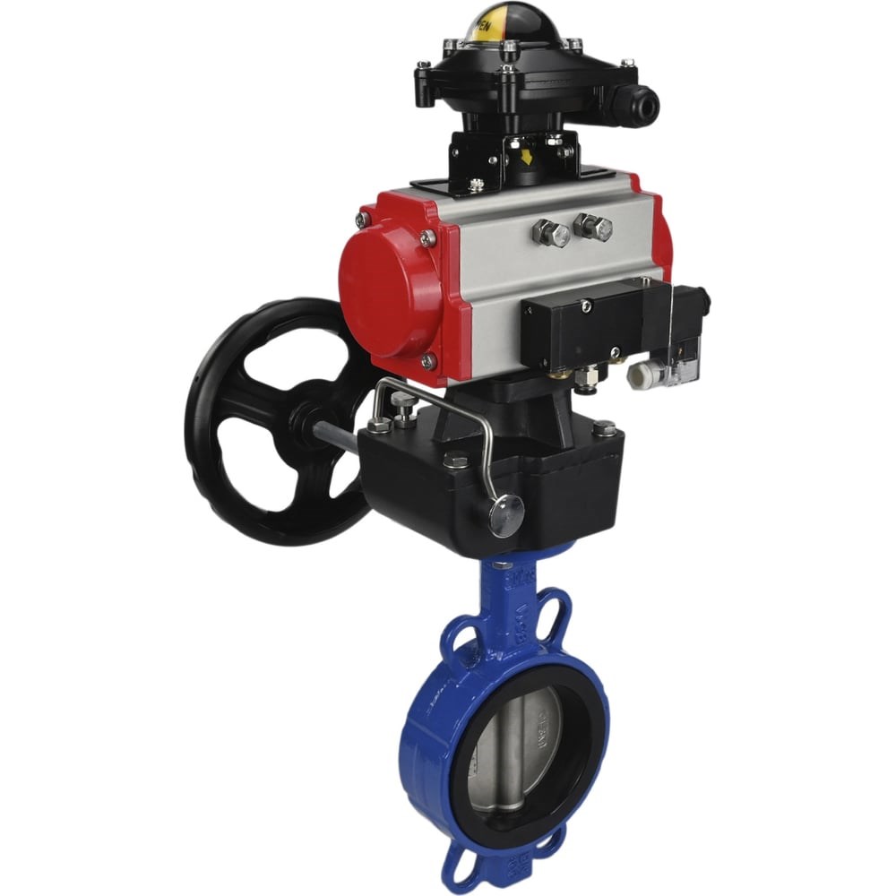 Затвор дисковый поворотный DN.ru WCB-316L-NBR с пневмоприводом DA-065, пневмораспределителем PND2-S1EM-52-1NC-J08-220VAC, БКВ LSB-210-02NM12-220/24, ручным дублером HDM-1. Параметры затвора: Темп. раб. среды: от -20⁰C до +85⁰C Рабочая среда: вода, минеральные масла, углеводороды, масла, жиры Класс герметичности: A Материал корпуса/диска: сталь WCB / нерж. сталь AISI316L Уплотнение: NBR Строительная длина: 43 мм Отверстия на ответных фланцах: 4х19 мм, на затворе параметры могут отличаться Параметры пневмопривода двойного действия: Раб. давление: 2-8 бар Рабочая среда: фильтр. сжатый воздух Темп. окр. среды: от –20⁰C до +80⁰C Крутящий момент (6 бар): 44 Нм Параметры пневмораспределителя: Раб. давление: 1.5-8 бар Темп. окр. среды: от 0°C до +60°C Напряжение: 220В Ручное дублирование: да Защита: IP65 Параметры БКВ: Защита: IP65 Темп. окр. среды: от -40°C до +80°C Кабельный ввод: 2xNPT1/2” Напряжение: 12-250В Параметры ручного дублера: Раб. температура: от -20⁰C до +80⁰C, до +160°C (сухой воздух) Климат. исполнение: У, УХЛ, Т, ОМ Защита: IP67 Товар может отличаться от представленного на фото, при выборе ориентируйтесь на технические характеристики.