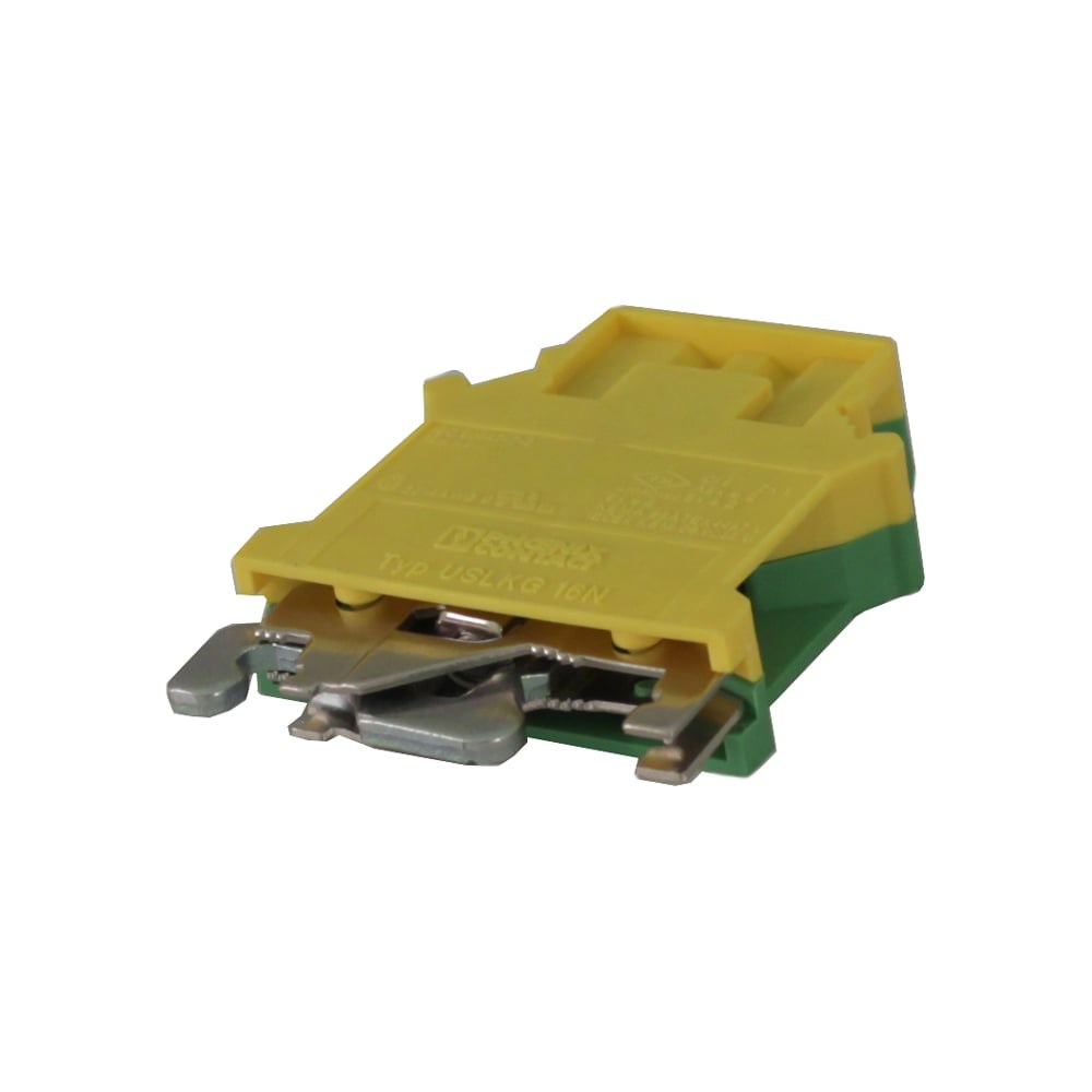 Заземляющий зажим SP-Terminal для соединения устройств грозозащиты с землей. Монтаж на DIN-рейку. Размеры (ШхВхГ): 12x43x52мм. Рабочая температура: -40…+80°С.