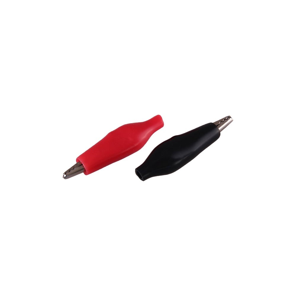 Зажим-крокодил в изоляторе представляет собой электромеханическое устройство, предназначенное для оперативного соединения или разъединения контакта проводов при выполнении измерительных работ или монтажа электрических и слаботочных сетей.Состоит он из двух фигурных деталей с «крокодильими» зубцами, скрепленных серединами специальным штифтом и способных поворачиваться на некоторый угол вокруг оси соединения. К одной из деталей монтируется контактный провод. Сжатие «челюстей» обеспечивается пружиной, вставленной с другой стороны штифта.Контактная часть изделия изготавливается из стали с никелированным покрытием и полностью закрыта изолятором. В целях безопасной эксплуатации зажима, изоляция, изготовленная из ПВХ, исключит случайное контактирование с другими токонесущими частями и предохранит от поражения электрическим током. Чаще всего зажимы применяются парами черного и красного цвета (50/50).