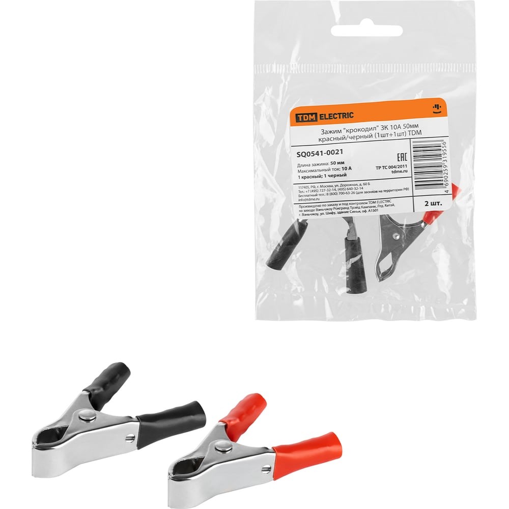 Зажим "крокодил" TDM ELECTRIC ЗК 10А 50мм красный/черный 1шт+1шт SQ0541-0021