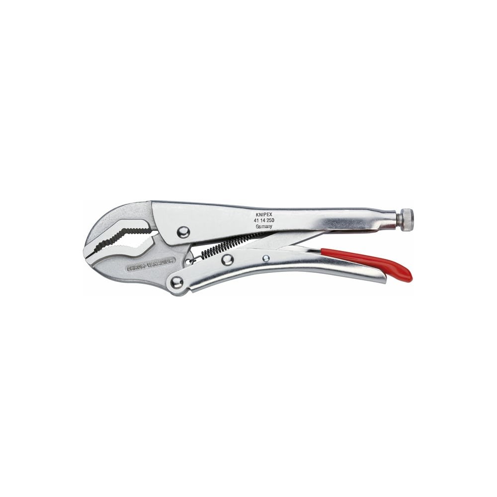 Зажимные клещи KNIPEX KN-4114250 имеют губки с двойной выборкой для фиксации деталей различного профиля. Используются преимущественно при сварочных работах, а также для откручивания / закручивания болтов и гаек. В конструкции предусмотрен регулировочный винт, обеспечивающий простую и точную настройку зева, а также рычаг разблокировки для быстрого разжатия клещей. Корпус изготовлен из катаной стали методом ковки с последующей закалкой, благодаря чему обладает высокой прочностью. Никелированное покрытие препятствует образованию коррозии и увеличивает износостойкость поверхности.
