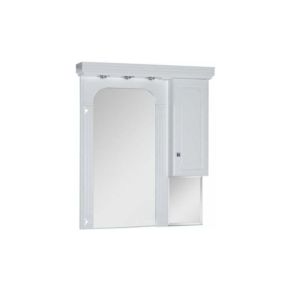 Зеркало Aquanet Фредерика 00171272 прекрасно сочетаться и с другими комплектами мебели в классическом стиле. При создании этой модели зеркала для ванной комнаты дизайнер вдохновлялся архитектурой Древней Греции. Арочная форма, изысканный декор в виде многоступенчатого карниза, пилястры на раме и аккуратная подсветка - все здесь продумано и выполнено с глубочайшим вниманием к деталям. Модель включает в себя большое зеркало и подвесной шкаф на распашной дверце, ручка которого инкрустирована кристаллами Swarovski. Три встроенных светодиодных светильника создают атмосферу легкости, воздушности и прослужат дольше обычного.