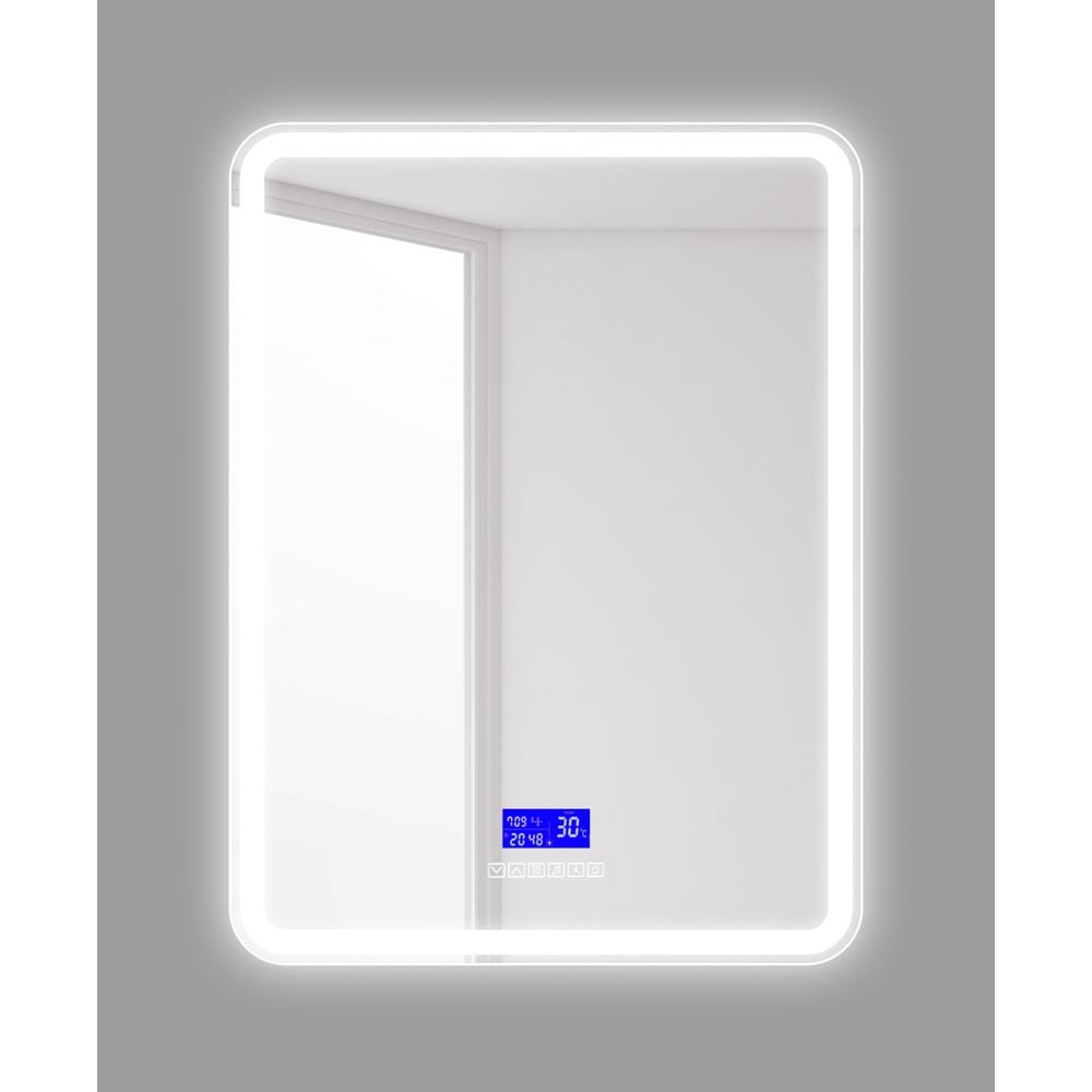 Декоративная светодиодная подсветка по всему периметру зеркала. Оснащено сенсорным выключателем на полотне зеркала со встроенным ЖК дисплеем(индикация дата/время, температура). Возможность регулировки декоративной подсветки. Режим Bluetooth-модуля, оборудованного микрофоном и звуковыми динамиками для возможности использования портативных устройств (смартфонов). Встроенный FM-радио приемник. Оборудовано цифровым термометром для контроля температурного режима в ванной комнате. Обратная сторона зеркала защищена пластиковой панелью от попадания воды и влаги. При отсутствии внешнего питания установки сохраняются и часы будут отсчитывать время несколько месяцев, получая энергию от встроенного элемента питания. 12W, 220-240V.