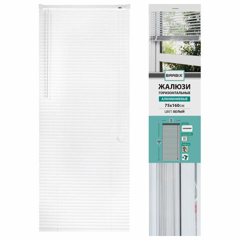 Жалюзи горизонтальные BRABIX 75х160 см, АЛЮМИНИЙ, цвет белый, 608626
