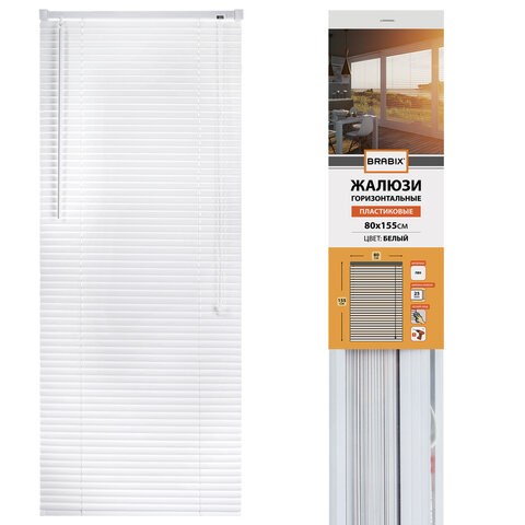 Жалюзи горизонтальные BRABIX 80х155 см, ПЛАСТИК, цвет белый, 606026