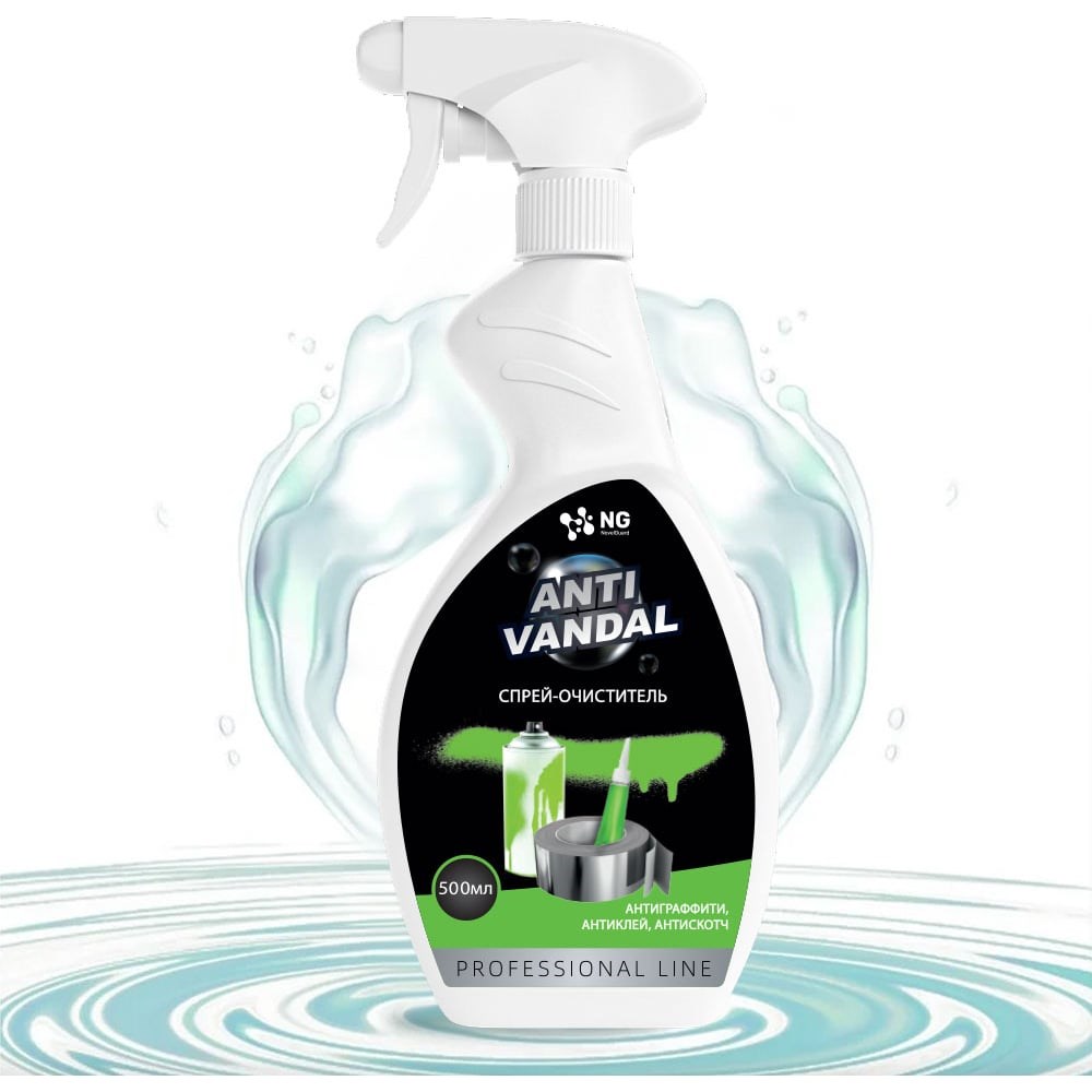 Жидкое антивандальное средство, антиклей, антискотч, антиграффити NG Antivandal 2300500 - мощный универсальный очиститель, который справится со сложными загрязнениями различного происхождения на всевозможных поверхностях. Очищающее универсальное средство эффективно удаляет: наклейки, остатки скотча, жевательную резинку, следы тополиных почек, воска с различных поверхностей изображения, нанесенные краской, маркером, пятна чернил, пластилина, нефтепродуктов, битума, масел и жиров, жирные отпечатки пальцев, смолы, графитового порошка, сажи и копоти Также подходит для чистки плит, варочных панелей, полов, подоконников и других поверхностей.