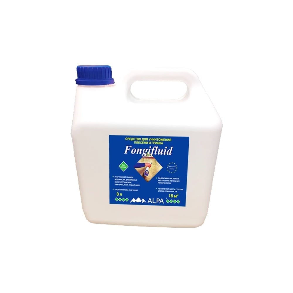 Жидкость на основе противогрибковых и противоплесневых соединений ALPA ФОНГИФЛЮИД 3 л 20810 - профессиональное средство для удаления всех видов мха, лишайника, плесени и грибка. Уникальная формула на основе современных фунгицидных веществ эффективно борется с широким спектром микроорганизмов на любой стадии заражения, обеспечивая длительную защиту. Очищенные с помощью Fongifluid основания возвращают естественные цвет, восстанавливают свои свойства; могут в дальнейшем окрашиваться водно-дисперсионными красками, использоваться под отделку штукатурками, шпатлевками и т.п. Средство не содержит токсичных веществ, безопасно для здоровья и окружающей среды. Применяется для обработки стен, полов и потолков в жилых помещениях: ванных комнатах, кухнях, гостиных, детских комнатах, спальнях, столовых, холлах, а также в банях, саунах, подвалах, парниках, теплицах. Подходит для очищения крыш, кровельных покрытий, заборов, оград, уличных деревянных конструкций. Для внутренних и наружных работ. Типы поверхностей: оштукатуренные и зашпатлеванные (с помощью материалов на основе цемента и гипса) поверхности, бетонные, кирпичные, керамические, гипсокартонные основания; дерево, камень, черепица, фиброцемент, ДСП, ДВП. Высыхание: средство действует в течение 4-6 дней после обработки. По истечении этого времени поверхность очищается щеткой под струей воды.