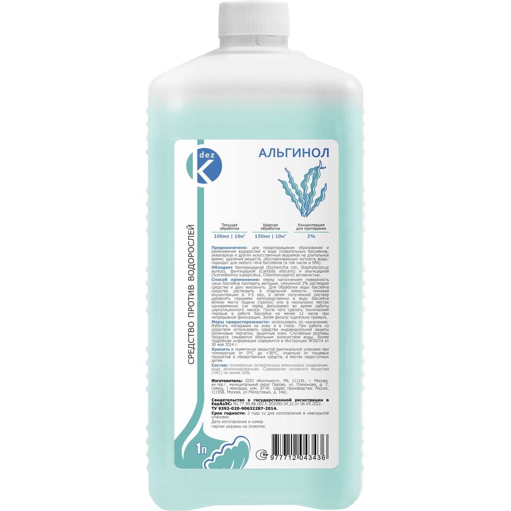 Жидкость для борьбы с водорослями ООО Континент АЛЬГИНОЛ
