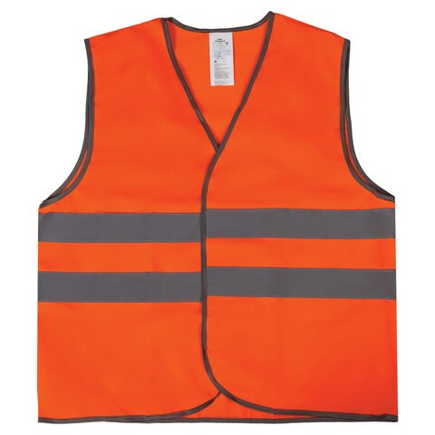 Сочетание неонового оранжевого цвета и светоотражающих полос обеспечивает его заметность как днем, так и в темное время суток. Жилет с центральной застежкой на ленту-липучку надевается поверх другой одежды. Изделие соответствует второму классу защиты, изготовлено из 100% полиэстера плотностью 120 г/м2. Ширина светоотражающей ленты – 50 мм.