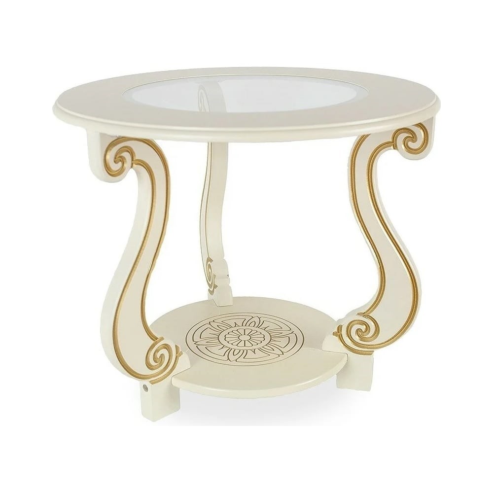 Журнальный стол Грация С станет стильным элементом современного интерьера. Компактный и элегантный предмет мебели на колесиках добавит изысканности и практичности в вашу гостиную, спальню или офис. Его уникальный дизайн станет отличным выбором для ценителей утонченности. Стол изготовлен из прочного МДФ с эмалевым покрытием, имеет оригинальные опоры, деревянную столешницу со вставкой из прозрачного и полку с гравировкой, покрытой патиной, что придает ему особый шарм. МАТЕРИАЛЫ: мдф, стекло эмаль, лак УПАКОВКА: 63х63х6 см, 1 место