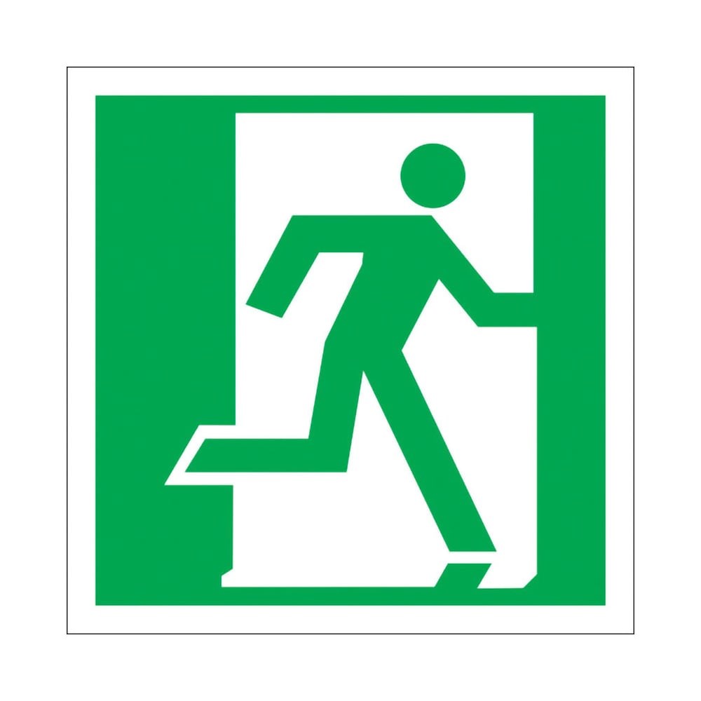 Знак используется над дверями (или на дверях) эвакуационных выходов, открывающихся с правой стороны. Изготовлен в соответствии с СО 153-34.03.603-2003, ГОСТ 12.4.026-2015.