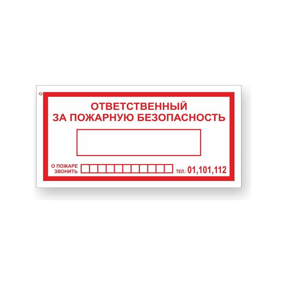 Знак "Ответственный за пожарную безопасность/При пожаре звонить 01,101,112" Стандарт Знак F20, 100x200 мм 00-00024003