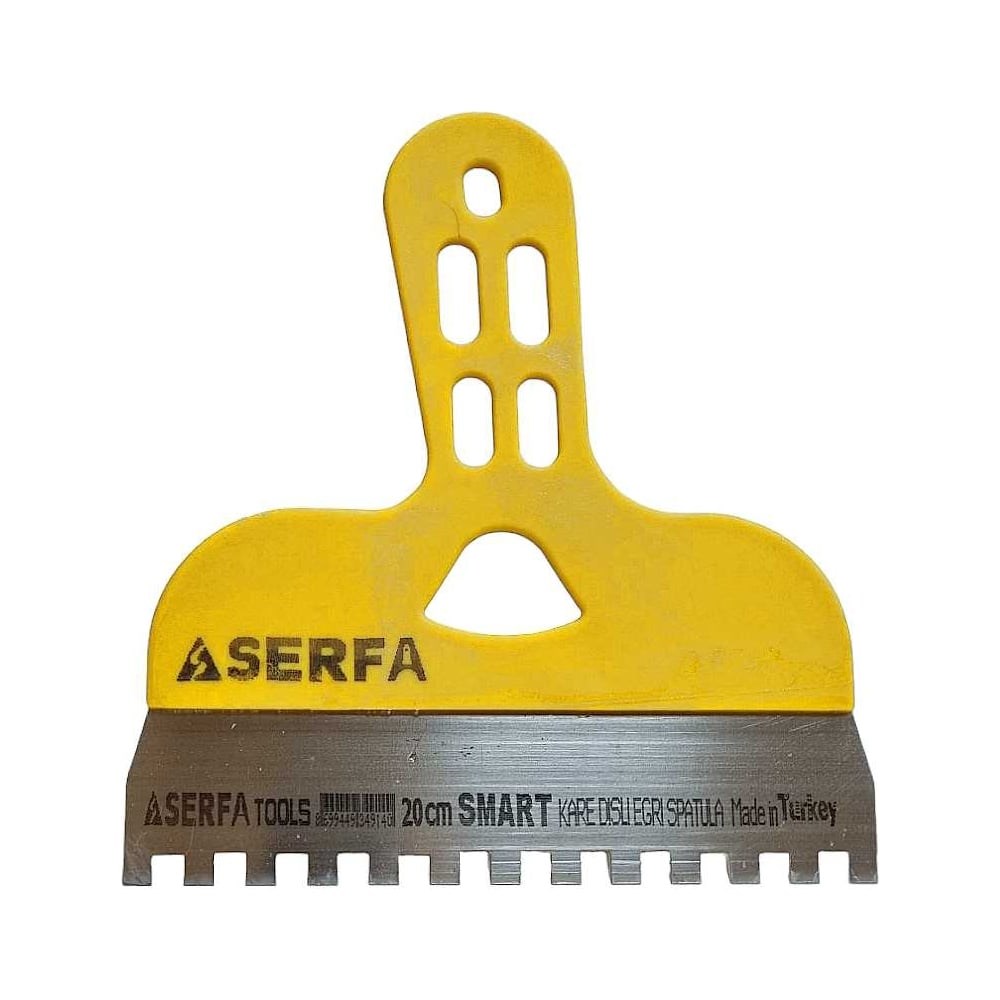 Предназначен для нанесения и распределения клеевых растворов и создания на их поверхности гребенчатой структуры при укладке керамической плитки, декоративного камня и др. Шпатель зубчатый служит для того, чтобы клеевая масса разравнивалась до одинаковой толщины слоя по всей площади материала без образования пустот.