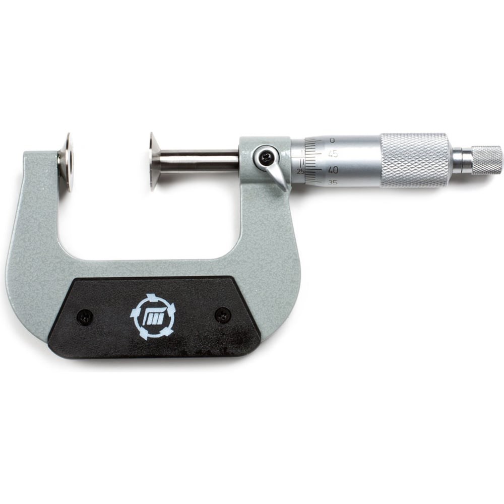 Зубомерный микрометр МЗ-125 0.01 Туламаш 103327 обеспечивает высокую точность измерений. Ручная настройка контролируется трещоткой, что исключает повреждение механизма. Рифление позволяет прикладывать меньше усилий для вращения.